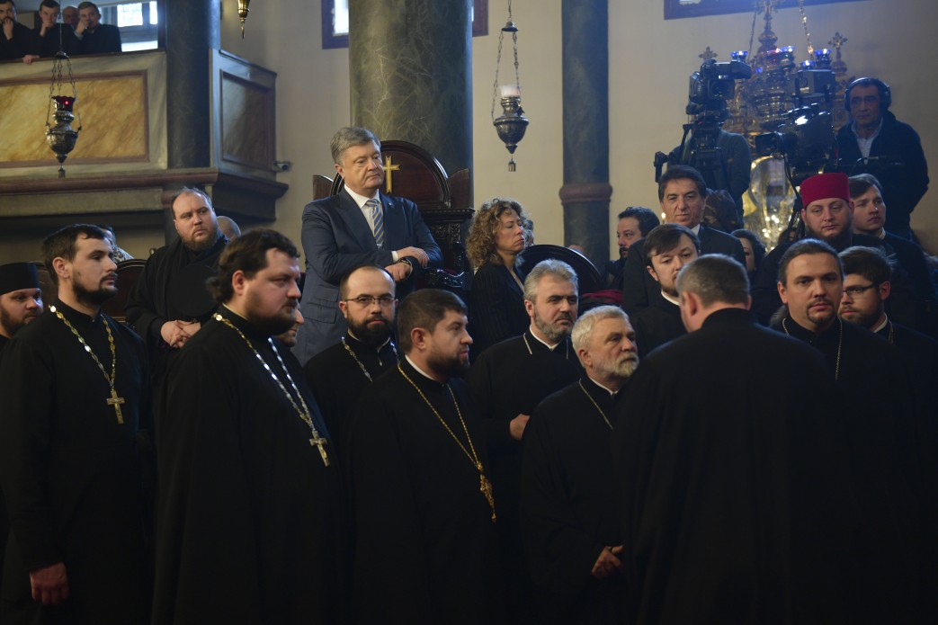 “Наша країна довго торувала шлях до цього дня, і не дарма вчора Його всесвятість (Вселенський патріарх Варфоломій – “Н”) згадав у своєму виступі і першу нашу княгиню-християнку Ольгу, і рівноапостольного князя Володимира-хрестителя”, – наголосив Порошенко.
