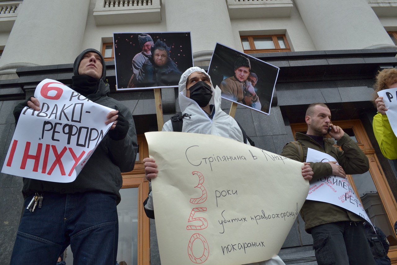 Учасники демонстрації вимагають відставки міністра внутрішніх справ Арсена Авакова, який залишається на посаді вже шість років – із лютого 2014-го.