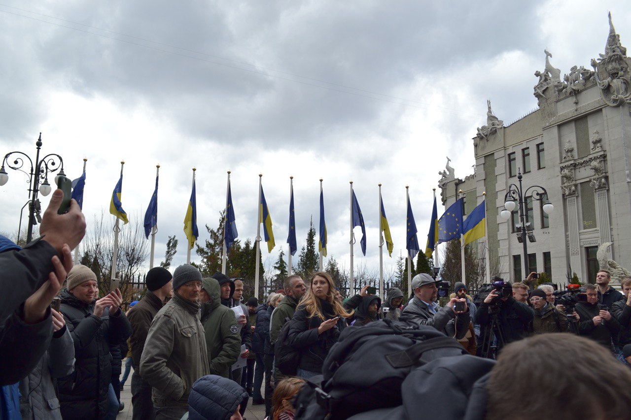Понад сотню активістів у неділю, 23 лютого, зібралися біля офісу президента України, на вулиці Банковій, на акцію “Геть Аваковірус!”