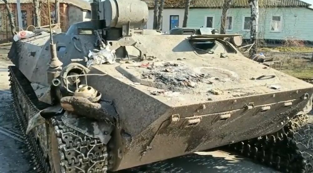 Українські захисники показали знищену під час боїв у Конотопі Сумської області військову техніку російських окупантів.