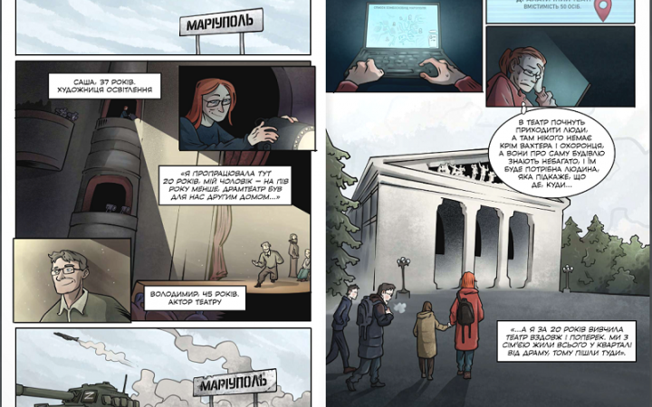 “Війна дає змогу бачити не тільки смерті, руйнування і знищення, вона також дає можливість бачити справжніх героїв, доброту незнайомців, єднання в очах мільйонів та історії, від який холоне кров. Наш перший випуск журналу-коміксу присвячений місту Марії. Місту, яке стало пеклом на землі. Історія про відважних лікарів, море, яке врятувало життя, Драмтеатр, який став прихистком і трагедією для сотень людей. Про дорогу в пекло, з якого дивом вдалось повернутись”, — кажуть автори коміксу.