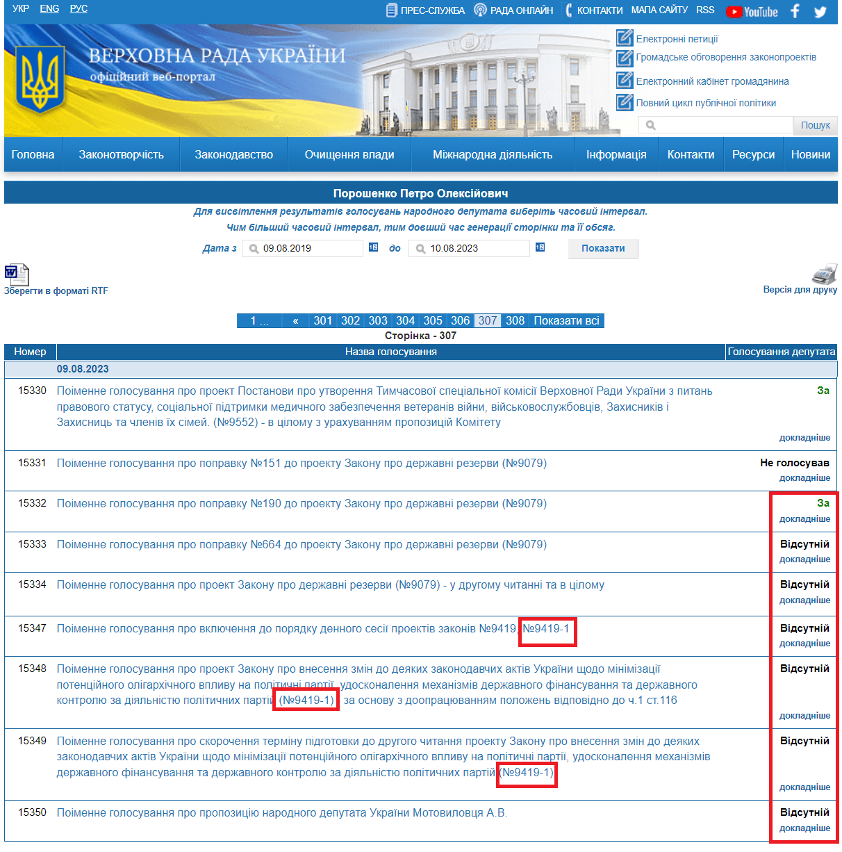 Водночас, як пише рух, ці зниклі нардепи голосували “за” розгляд інших питань порядку денного на засіданні Верховної Ради у середу, 9 серпня, або ж “не голосували” – парламентарі витягали картку зі слоту, таким чином імітуючи свою відсутність. Фізично вони наче перебували у залі, але за даними системи “Рада” – зникли.