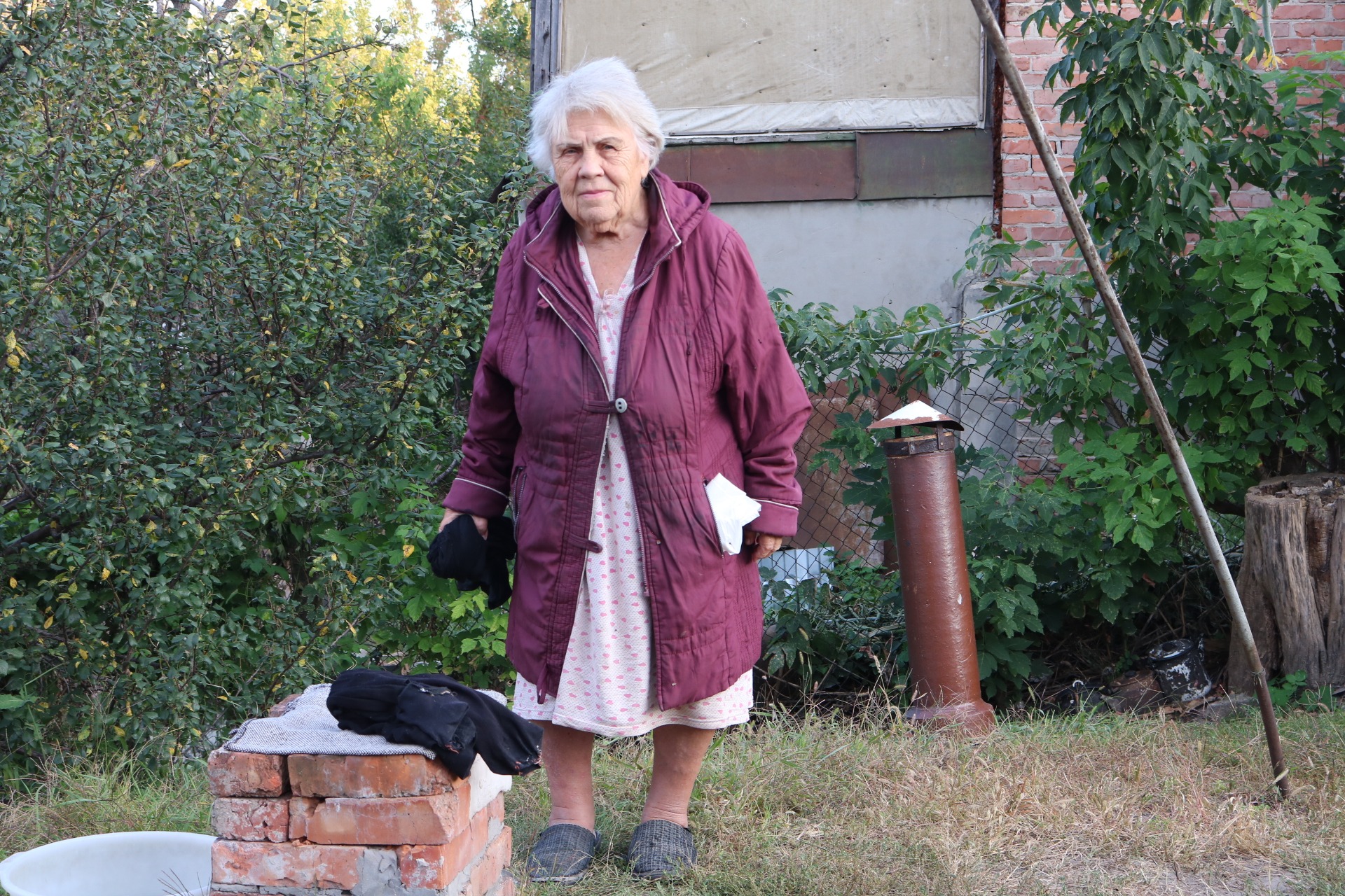 Її мама, Людмила Василівна, пере речі біля дому. Запевняє, що завжди вірила у звільнення міста. Але попри те, що загарбників в Ізюмі більше немає, боїться полишати підвал: