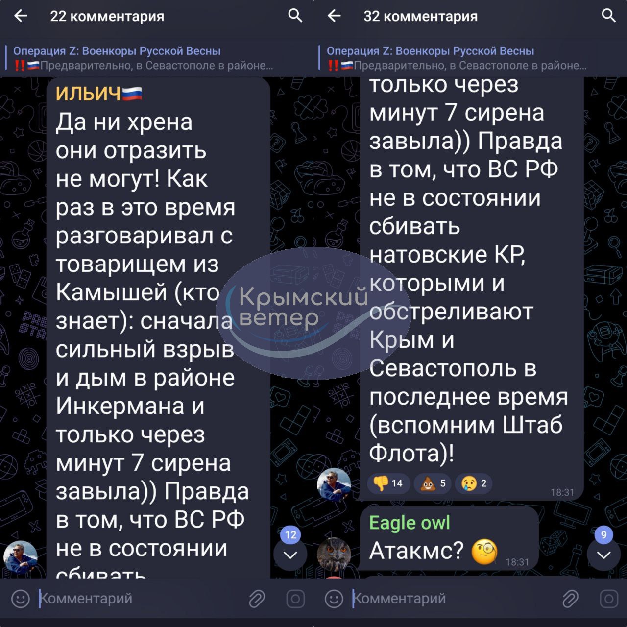Водночас росіяни у Z-пабліках вибухнули гнівними коментарями після вибухів у Севастополі.