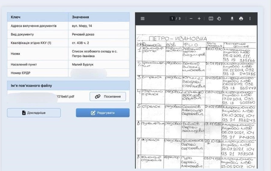 Загалом у базі вже є понад 2,5 Тб інформації з фото і відео, допитами полонених.