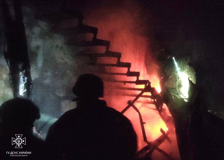 Російські війська у ніч на 5 лютого прицільно вдарили по одному з житлових кварталів Херсона. Пожежі виникли в приватних будинках одразу за двома адресами.