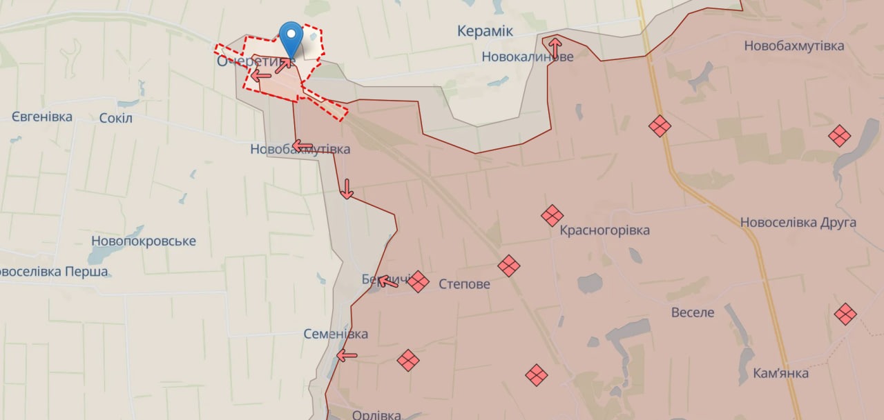 23 квітня в ОСУВ “Хортиця” повідомили, що Сили оборони нині контролюють переважну частину Очеретиного Донецької області. Водночас російські війська намагаються закріпитися в південній частині селища, яка перебуває під вогневим контролем української артилерії.