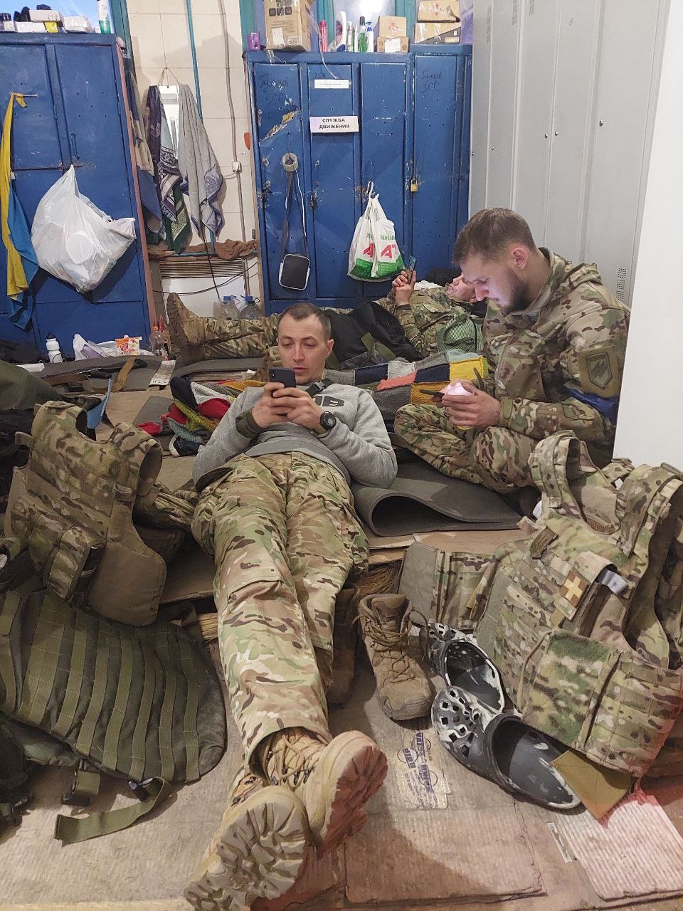 У Маріуполі були вже ввечері. Командир тодішнього полку НГУ “Азов” Денис Прокопенко “Редіс” подякував, що приїхали, і хлопці почали роз’їжджатися по своїх підрозділах. Артема забрали в пресслужбу, з якої він звільнився два роки тому. Там уже було кілька операторів, а тексти писав тільки Дубина.