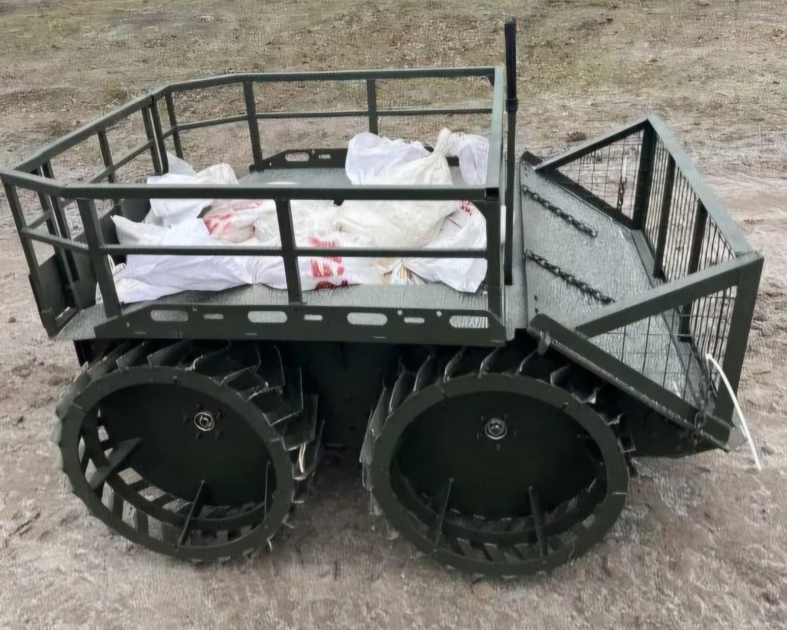 “Робот обладнаний безшумним електричним двигуном. Рухається на металевих колесах з широкими ґрунтозачіпами, завдяки яким долає бездоріжжя, каміння, трясовину і неглибокі водні перешкоди. Оператор керує роботом з безпечної відстані”, — йдеться в повідомленні.
