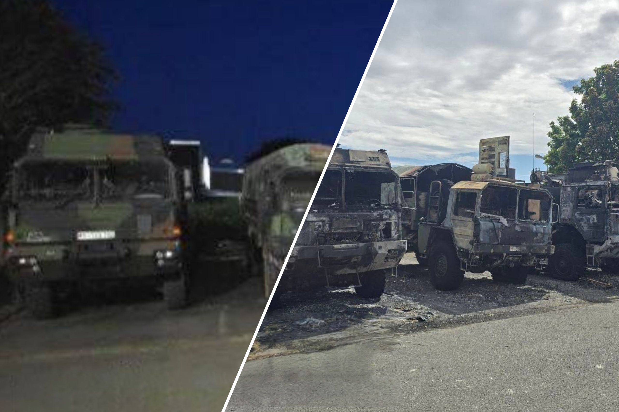 На відео горить щонайменше шість вантажівок Rheinmetall MAN різних модифікацій. Однак на їхніх бортах добре помітно характерні хрести Бундесверу та німецькі автомобільні номери, що свідчить про їх приналежність до ЗС Німеччини.