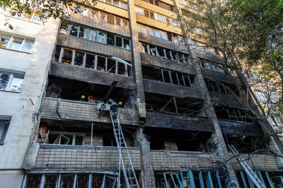 “У Дніпровському районі уламки БпЛА впали у дворі житлових будинків і на території навчального закладу. Без горіння. У Солом’янському – падіння уламків на нежитлову забудову. А також на території гаражного кооперативу. Там пожежа. Також у цьому районі палали складські приміщення. Та було загоряння в адміністративній будівлі. У Святошинському районі уламки ворожого БпЛА впали на територію складських приміщень, внаслідок чого виникла пожежа. Також падіння уламків відбулося в двір 16-поверхового житлового будинку, горять автомобілі. У приватному секторі виникла пожежа внаслідок падіння уламків”, – писав Кличко у телеграмі.