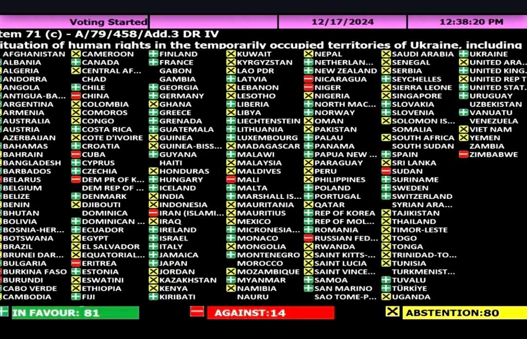 До відома: коли Генеральна Асамблея ООН 24 лютого 2025 року ухвалила українську резолюцію щодо третьої річниці російської війни “Просування всеосяжного, справедливого і тривалого миру в Україні”, Ангола звично “утрималася”. Так само вона голосувала і в 2022 році. “Утримується” Луанда в ООН і з питань Криму.