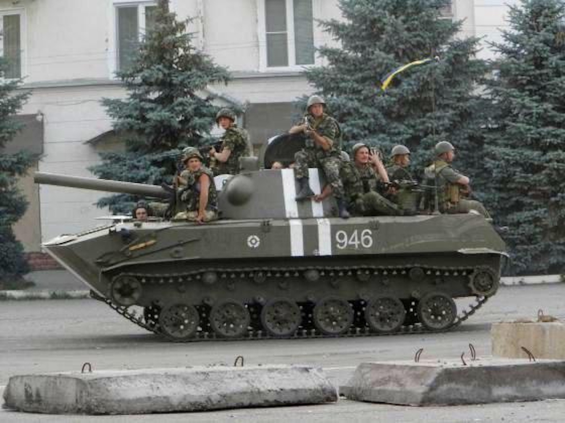 Блокування десантників 25 опдбр у селищі Пчолкіно під Краматорськом 16 квітня 2014 року. Фото: LB.ua