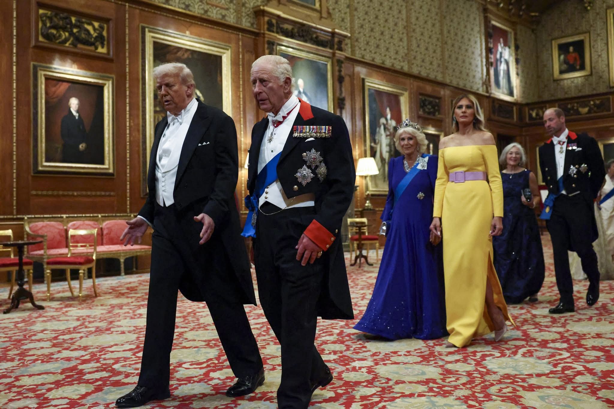 Спостерігачі звернули увагу на поєднання синьої сукні королеви-консорта Камілли та жовтої – Меланії Трамп.