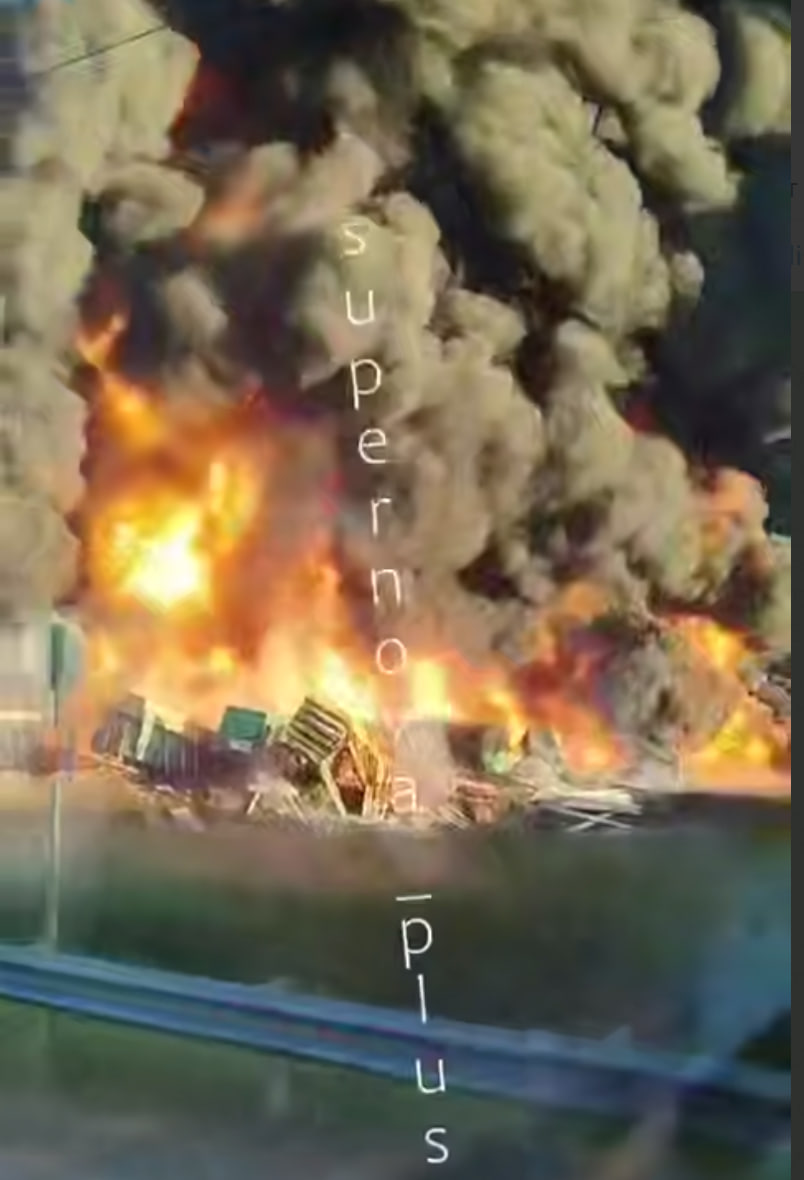 18 вагонів з бензином зійшли з рейок і загорілися в Смоленській області Росії через зіткнення вантажного поїзда і вантажівки вранці 26 вересня.