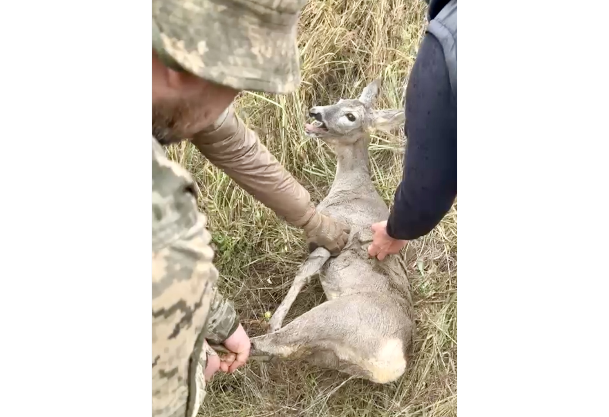Козуля раптово потрапила в дротяну пастку. На щастя, поруч опинилися бійці “Хартії”, які допомогли тварині вийти з путанки на волю та повернутися до дикої природи.