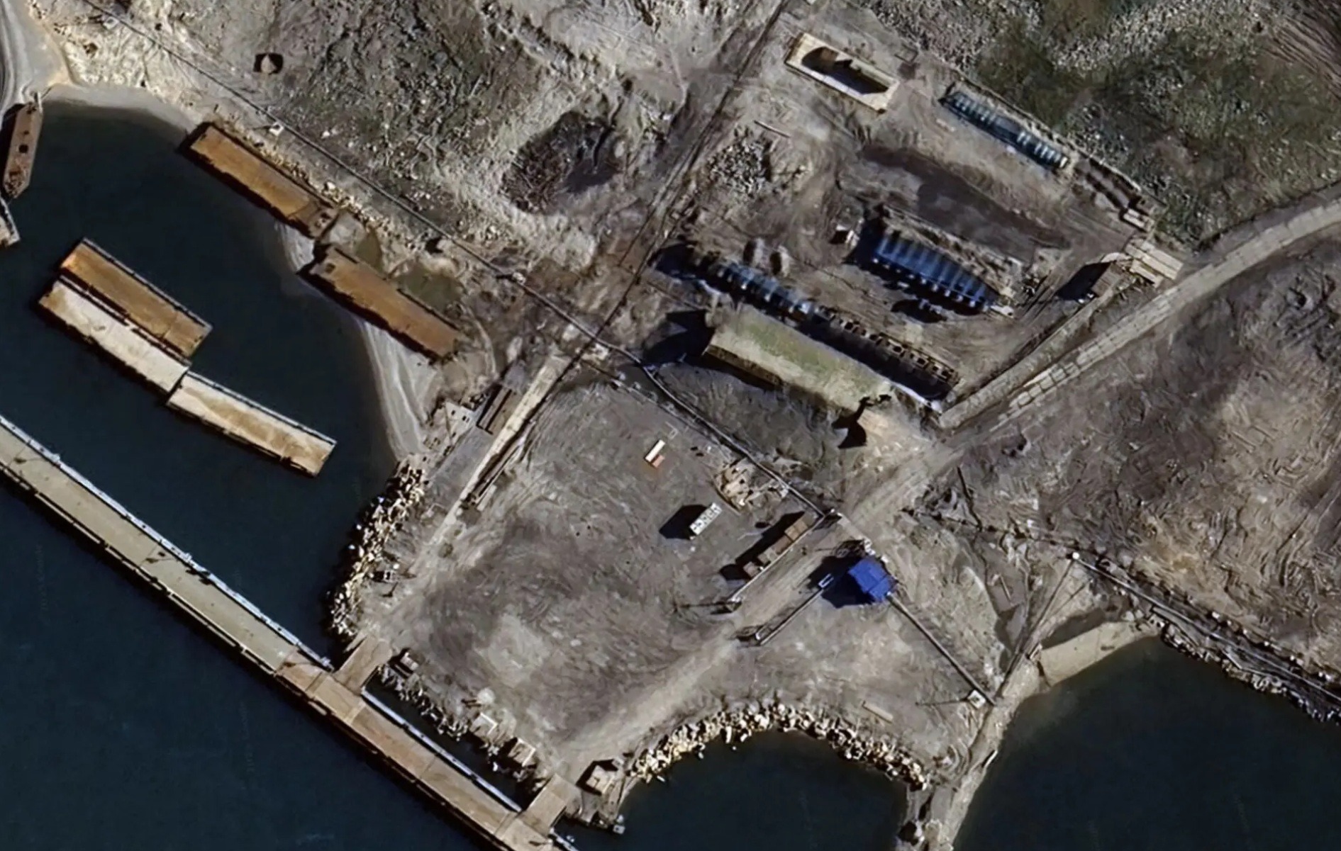 Ближче до центру селища стоять великі цистерни з мазутом для опалення та електропостачання, які, як видно зі знімків, не накриті захисними сітками. Також сітками не закриті деякі резервуари для авіапалива на вертолітному майданчику поруч із Північним.