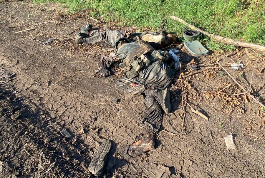 Рештки російських окупантів та їхнє сміття. Напрямок наступу 47 омбр “Магура” у Запорізькій області, 2023 рік. Фото: Мирослава Ільтьо / “Новинарня“
