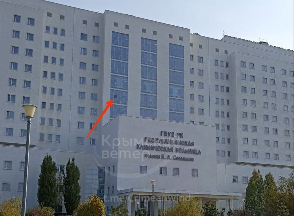 “Близько 7-ї ранку 6 листопада під час відбиття атаки дронів на нафтобазу в селищі Бітумне великокаліберні кулі влучили в фасад будівлі та порушили скління фасаду восьмого поверху Республіканської клінічної лікарні ім. М.О. Семашка. Фасадне вікно – склопакет із тришарового скла, кожен лист скла 5-6 мм завтовшки. Це не пряме влучання, кулі падали наприкінці балістичної траєкторії”, – йдеться в повідомленні.