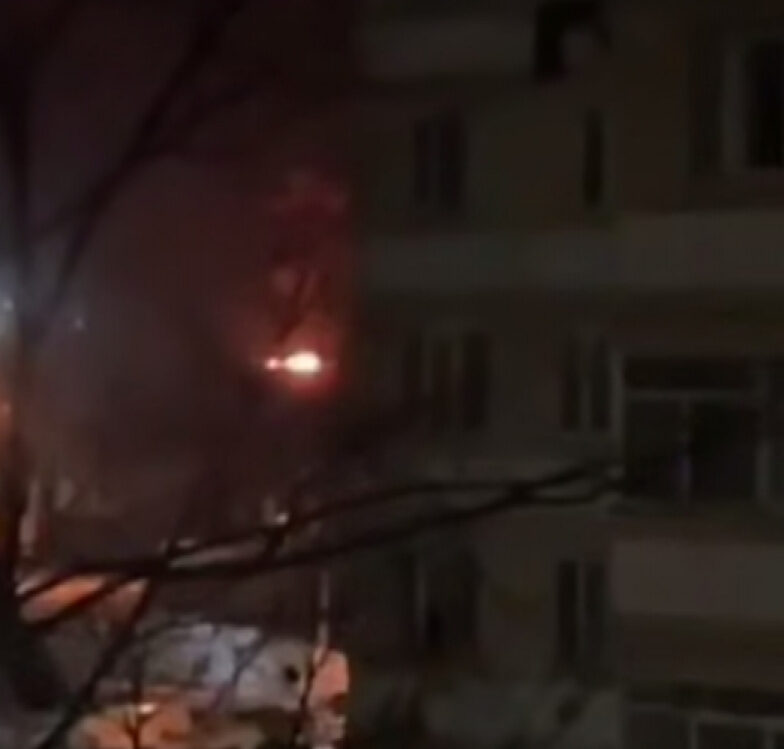 Телеграм-канали опублікували відео, на якому чутно звуки вибухів та видно пожежу.