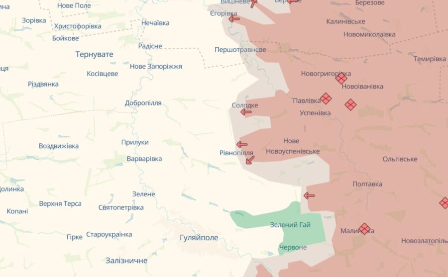 Ситуація в районі Рівнопілля на Запоріжжі за даними мапи DeepState станом на 12 листопада 2025 року: