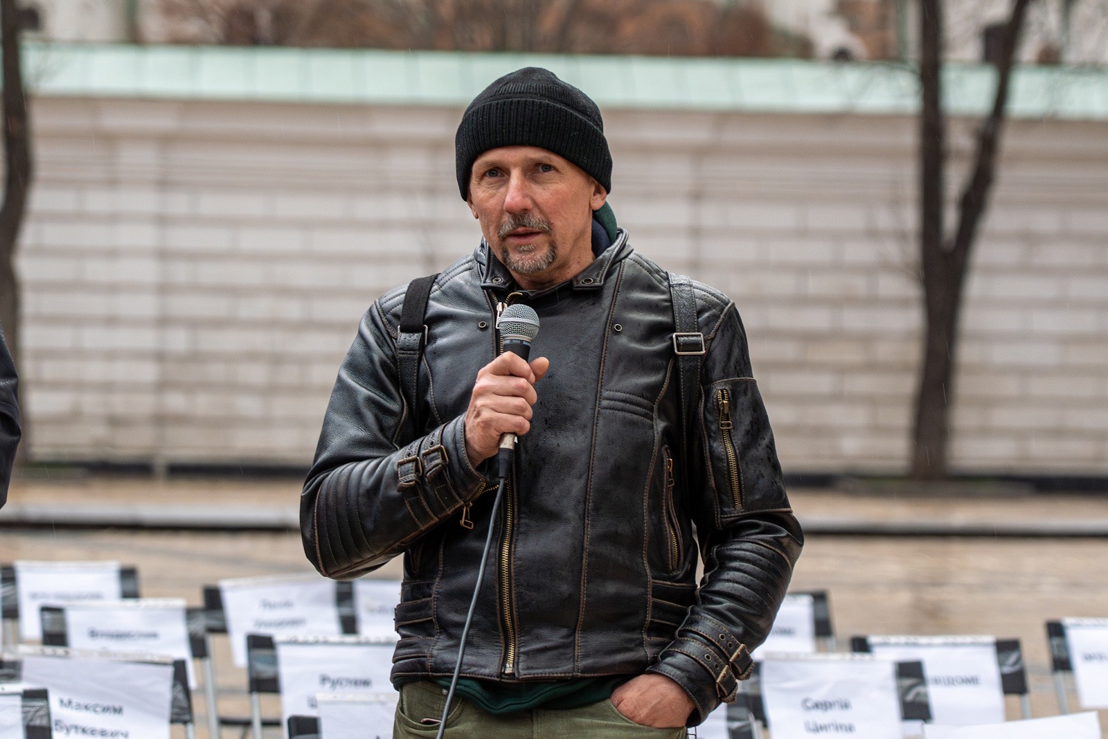 “Ще у 2014 році на різних майданчиках ми розклеювали, розвішували чи розкладали таблички з іменами Олега Сенцова, Олександра Кольченка, Геннадія Афанасьєва і ще багатьох інших. Звісно, тоді я не знав, що надійде момент, коли я не знатиму про це, але табличка з моїм іменем також буде наклеєна на один з таких стільців.
