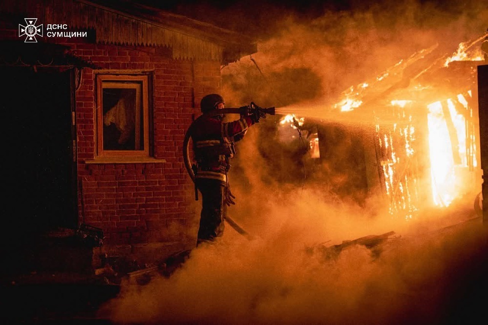 “Вночі ворог наніс удар по одному із сіл Сумської громади. Попередньо, травмовано одну людину. Пошкоджень та руйнувань зазнав приватний сектор, та нежитлове приміщення. Спалахнула масштабна пожежа, яку рятувальники ліквідували”, – розповіли у ДСНС.