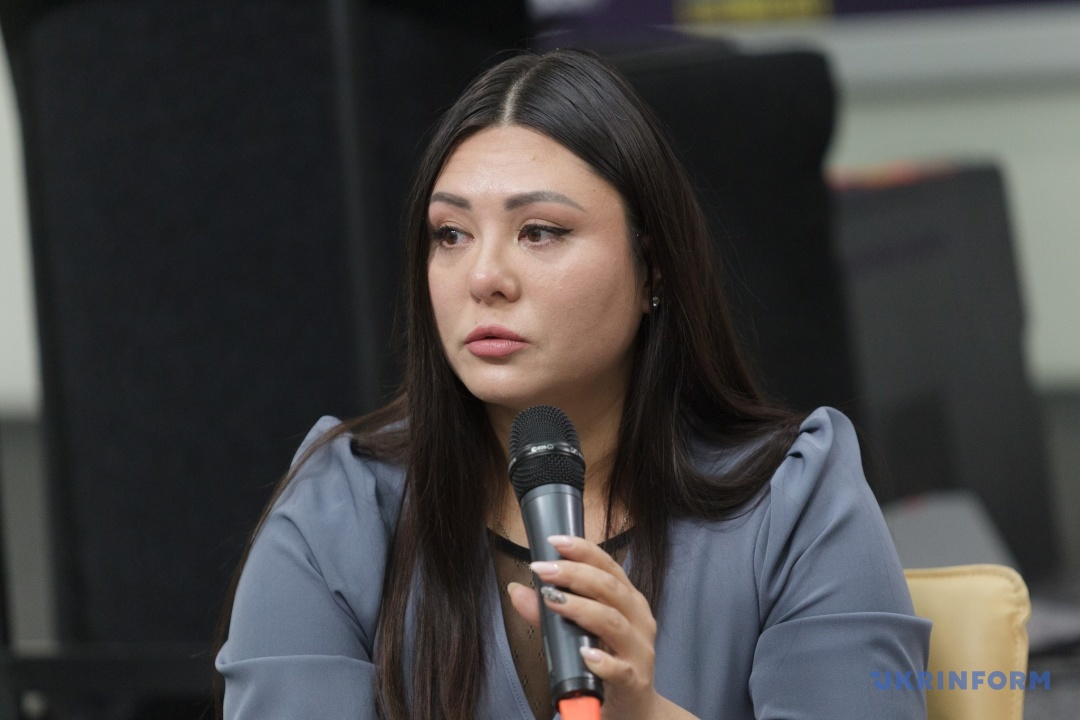 Ірина Криніна, засновниця руху “Наш вихід”, на пресконференції в Києві. Грудень 2023 року. Фото: “Укрінформ”