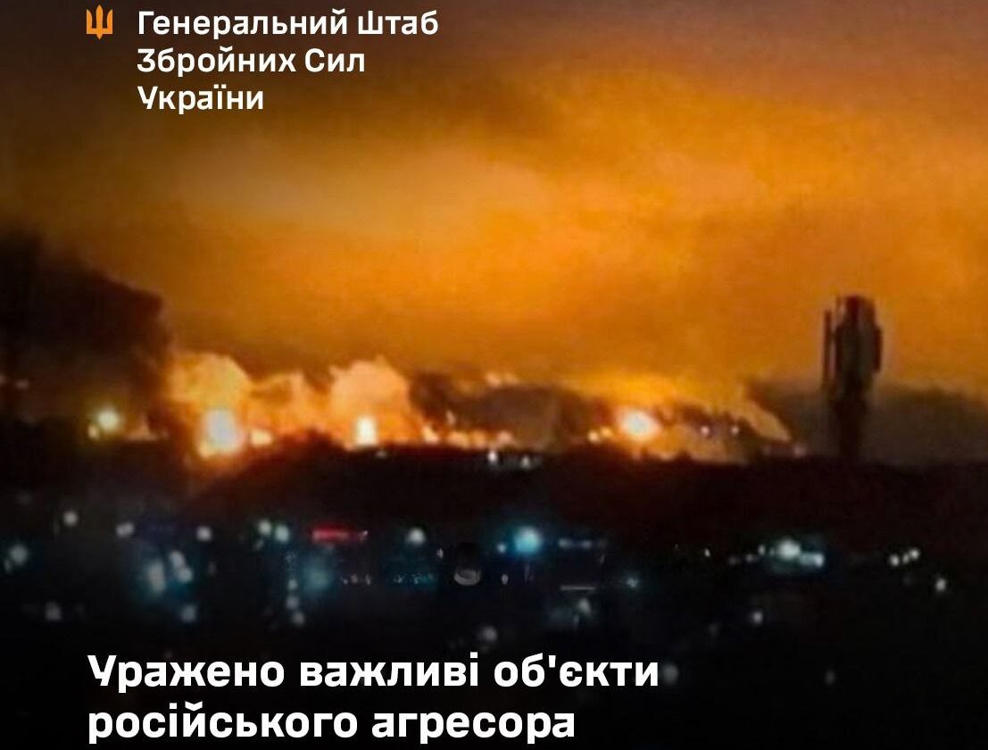 Зафіксовано вибухи та потужну пожежу у районі цілі. Ступінь збитків уточнюється.