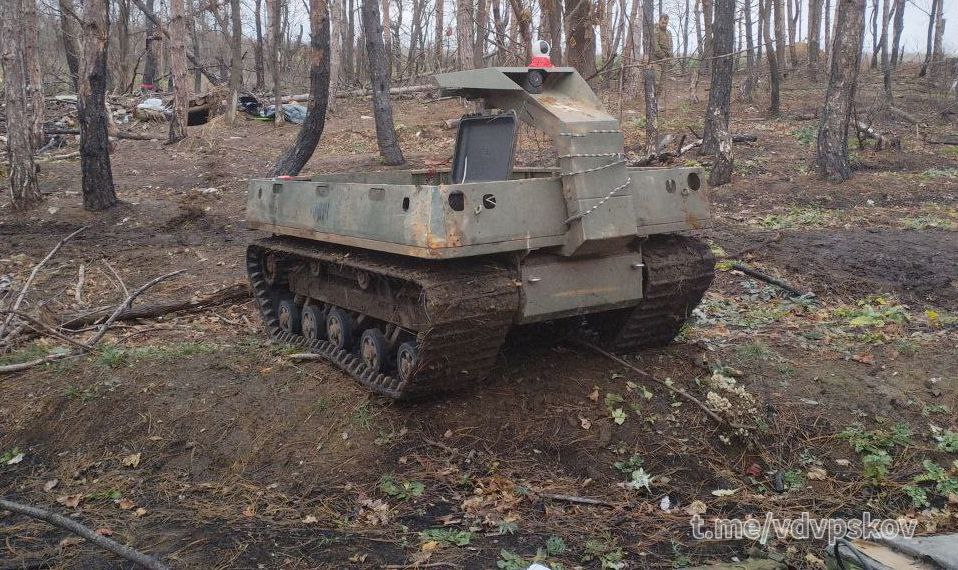 Російська роботизована платформа «Омич» на окупованій території України. Фото: @TheDeadDistrict