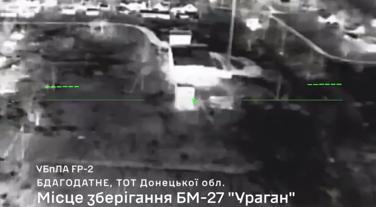 Там зазначили, що у районі населеного пункту Благодатне оператори ССО вразили місце зберігання реактивних систем залпового вогню БМ‑27 “Ураган” та локацію екіпажів, що обслуговували ці установки.