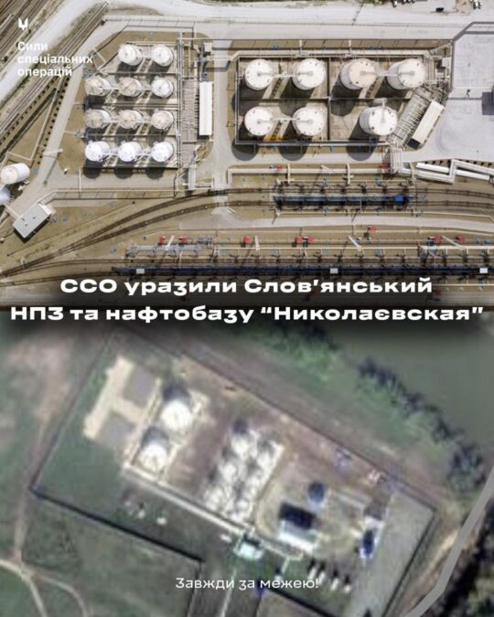 Також підтверджено влучання по території нафтобази “Николаєвская” в Ростовській області РФ . За попередніми даними, пошкоджено резервуар та річковий плавзасіб “Капітан Гіберт”.