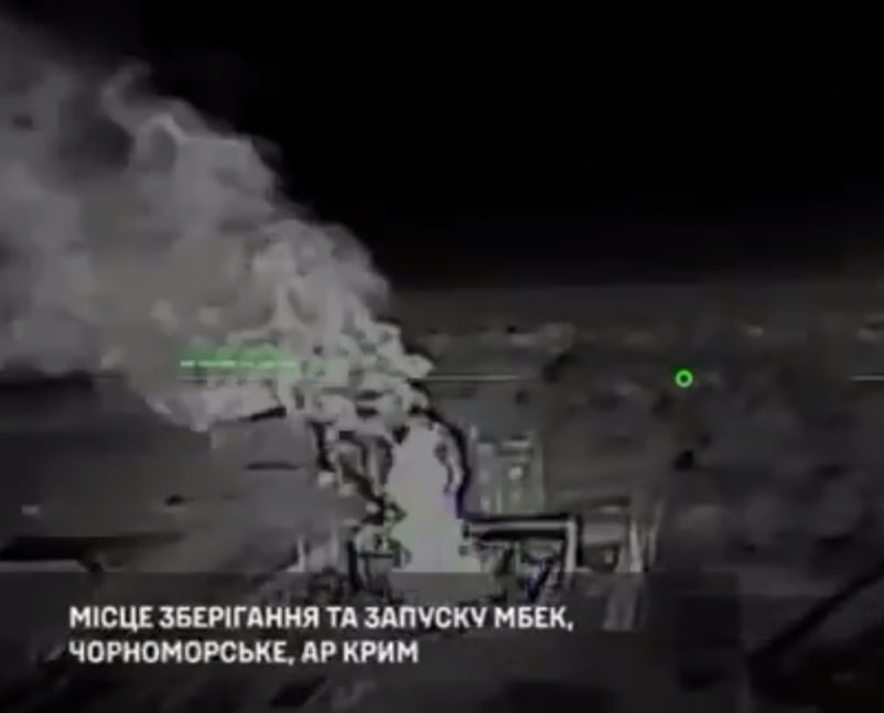 У ніч на 28 грудня в тимчасово окупованому Криму українські дрони уразили РЛС “Валдай”, пункт управління комплексом радіолокаційної розвідки, а також базу зберігання та запуску морських безекіпажних катерів російських військ.