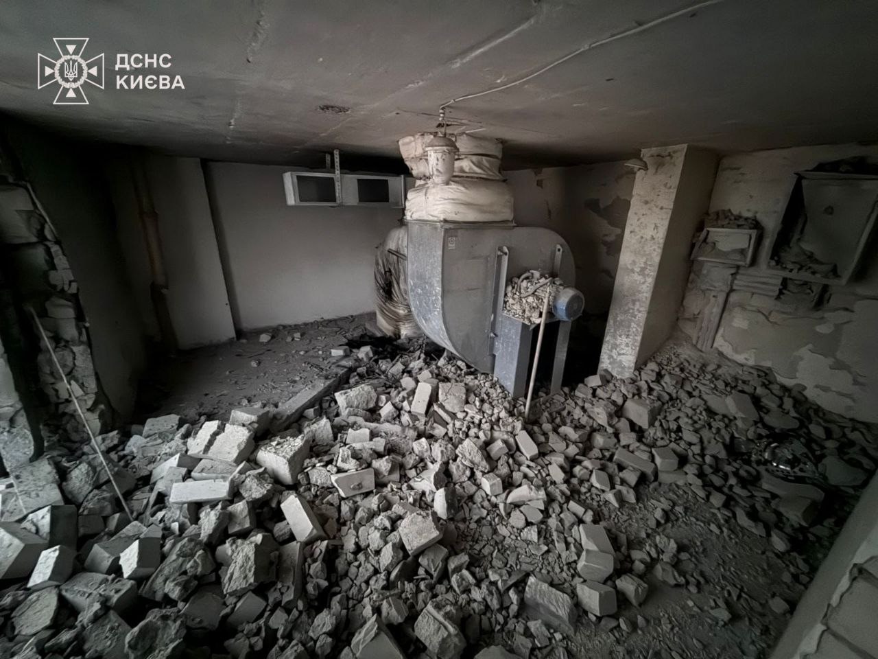 Внаслідок удару зруйновано стіну на площі чотирьох квадратних метрів, без пожежі.