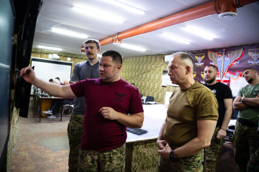 Олег Апостол, командувач 1-го КНГУ “Азов” Денис Прокопенко “Редіс” і головком Олександр Сирський на Добропільському напрямку. Вересень 2025