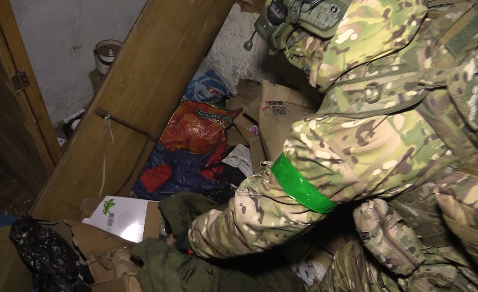 Розслабитись не вдається. У нашому, здавалося б, безпечному сховку знаходимо російський камуфляж, бушлати, головні убори… Бійці кажуть: навіть у відносно глибокому тилу нині можна запросто зустріти ворога.