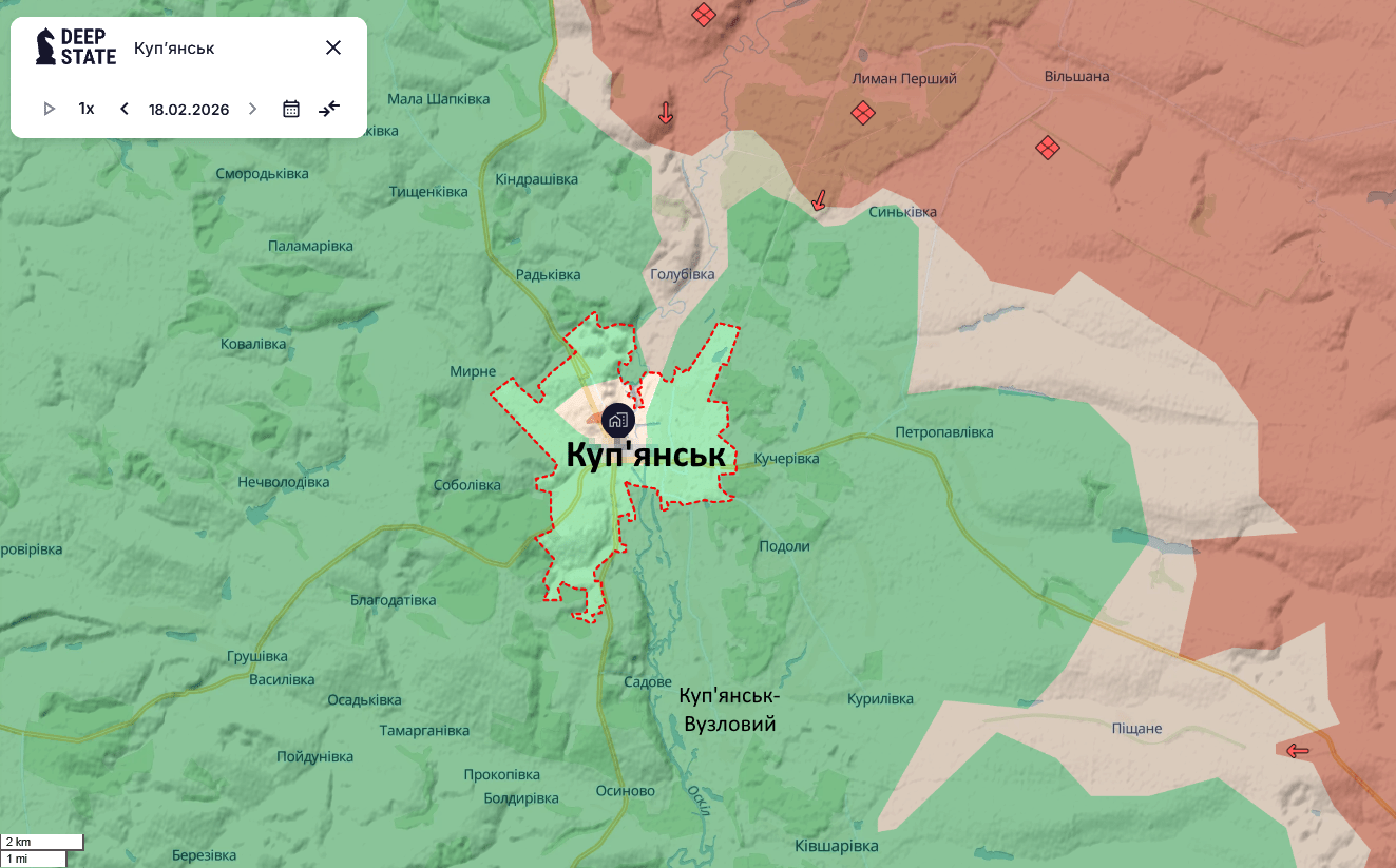 “У свою чергу, спроби російської 68-ї мотострілецької дивізії деблокувати залишки своїх штурмових груп з півночі, зі свого плацдарму на Осколі на північ від міста, через Голубівку, також поки що були безуспішними. ЗСУ жорстко контролюють дорогу, що проходить уздовж Осколу через Голубівку з півночі на південь, тобто в місто, а також квартали у північній частині міста, у районі вулиці Мічуріна і куп’янського парку “Екстрім”, – зазначає аналітик.