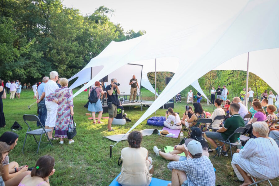 Дмитро Лазуткін читає поезію на фестивалі “Протасів Яр” у Києві 19 серпня 2023 року. Фото: Олена Максименко / “Новинарня“