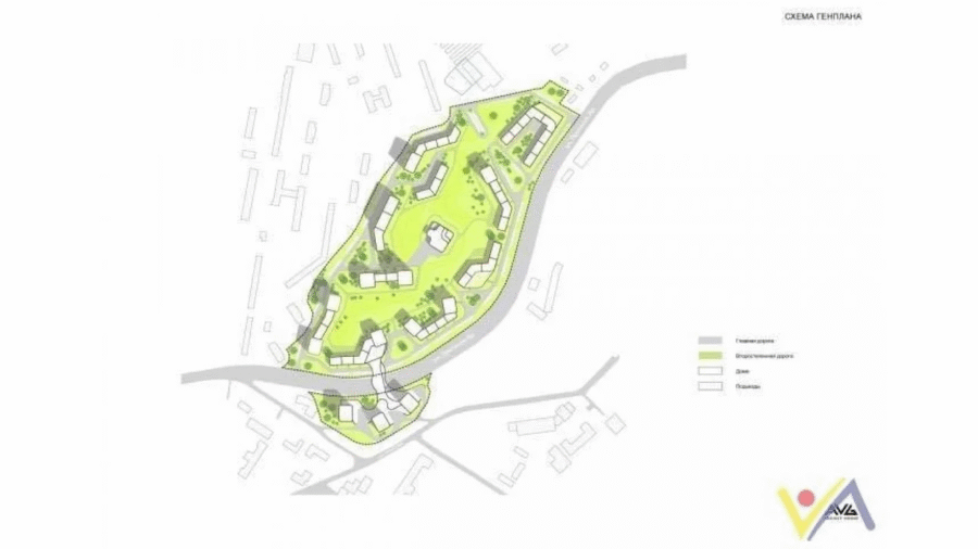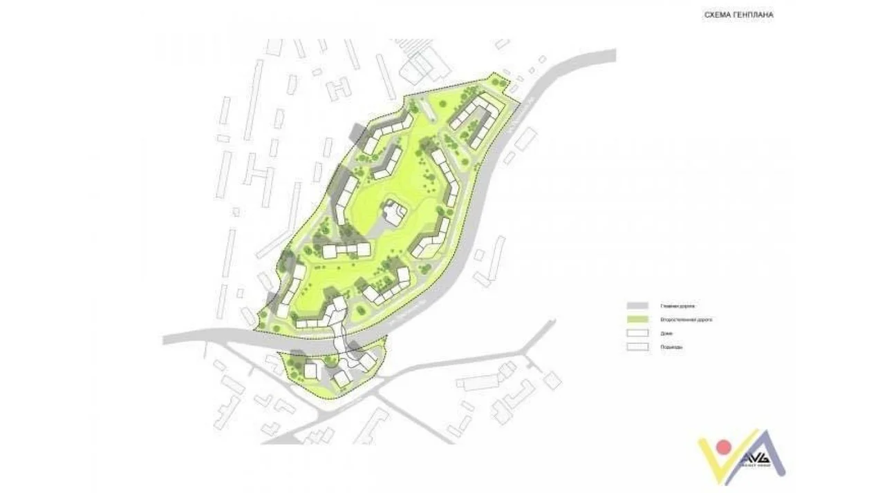 Ось так має виглядати забудова Протасового Яру на думку ТОВ “Протасів яр”. Видно різні ділянки та навіть місток між ними. З відкритих джерел