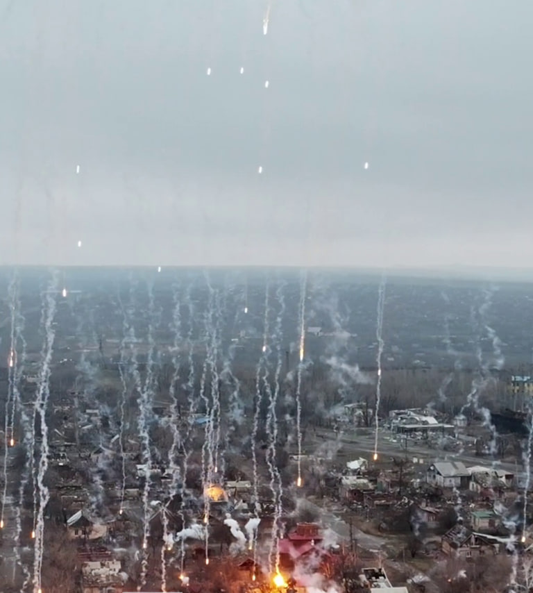 Атаку фосфорними боєприпасами по житловому кварталу Костянтинівки відзняли пілоти підрозділу R.V. 3 механізованого батальйону 28 ОМБр.
