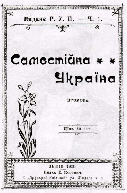 Березневі промови Миколи Міхновського на вшануваннях пам’яті Тараса Шевченка у Полтаві і Харкові незабаром лягли в основу друкованої книжки: маніфест “Самостійна Україна” було видано у травні 1900 року на замовлення РУП і за підтримки товариства “Молода Україна”.