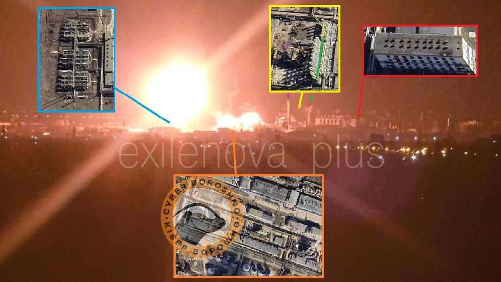 Як пишуть осінтери «КіберБорошна», з наявної інформації та численних відео можна зробити висновок, що до заводу «КуйбишевАзот» долетіли численні дрони, ймовірно Ан-196 «Лютий». З відео можна зробити висновки, що уражено: