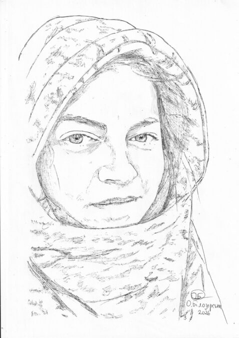 Вона також створила портрет військовослужбовиці, створений гелевою ручкою на папері.