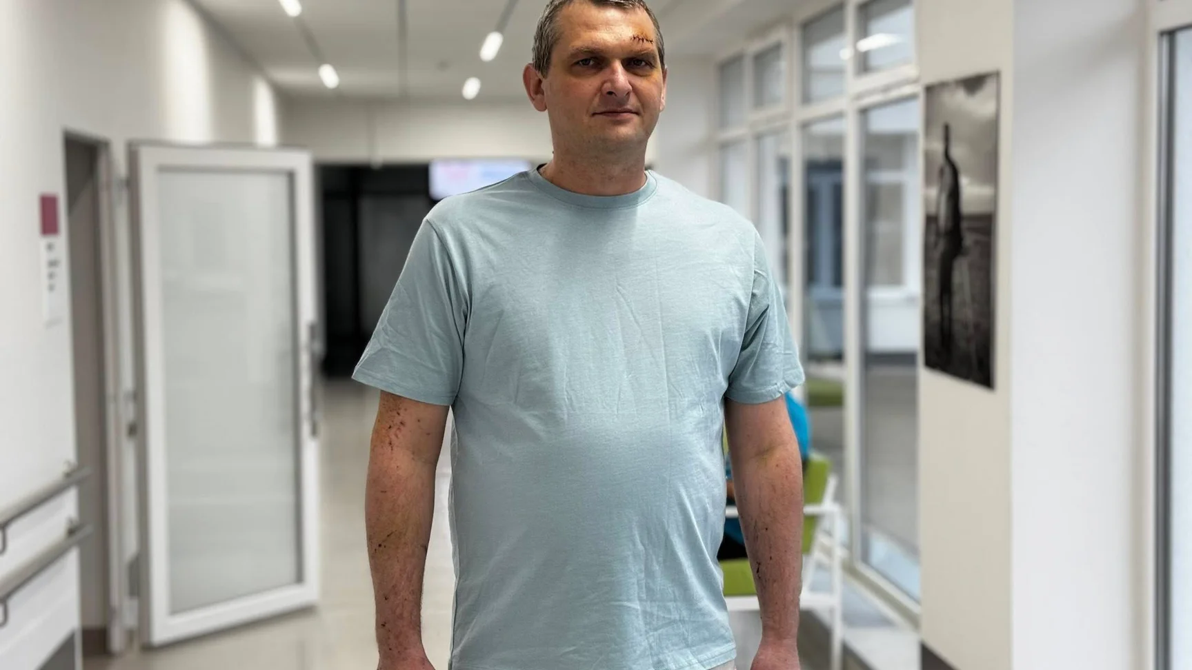 44-річний львів’янин Юрій Пиріг постраждав внаслідок російської атаки по місту 24 березня. Медики виявили в легені чоловіка 10-сантиметровий шматок скла.