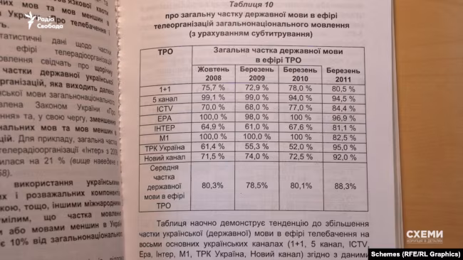 Наприклад, у звіті народного депутата йшлося про відсутність квот для російської мови в теле- та радіомовленні та недостатню кількість російськомовних шкіл. Натомість офіційний звіт від української влади підкреслював, що російська мова фактично витіснила українську в багатьох сферах життя великих міст, і підтримка російської мови лише сприяє збереженню тоталітарної політики СРСР, пишуть “Схеми”.